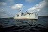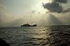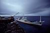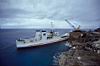 | 船が南港に近づく、船は着岸できないので、我々は岸壁の上にあるボートに乗せられ、船が近づいたところでクレーンで吊り上げられて海中に、そこから自力で船に近づく
