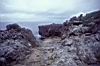 | 九項近くのぽつんと残された岩山。神社となっている。