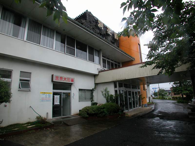 | 姶良温泉センター入り口、3Fの「洞花殿]と言う文字がいかにも怪しい。
