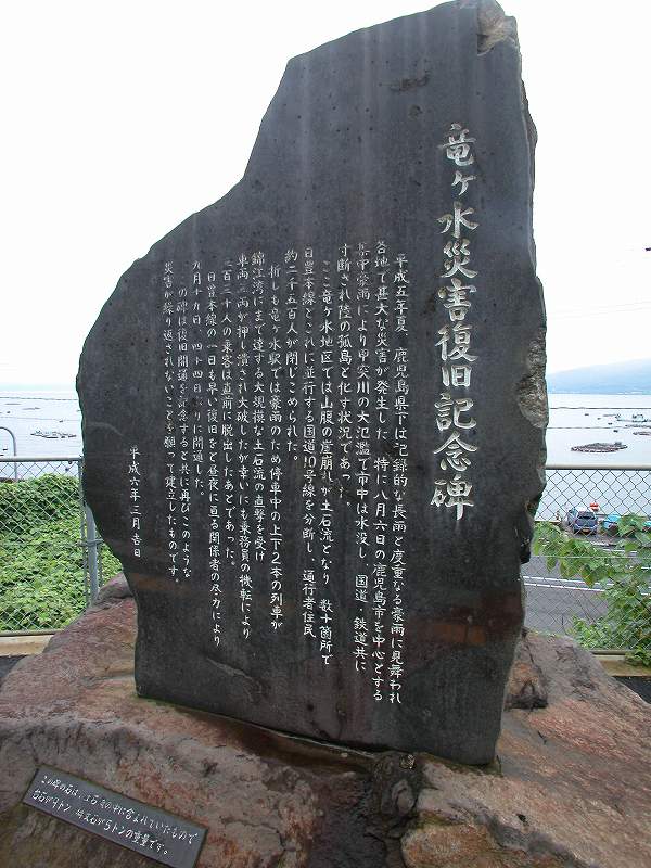 | 竜ヶ水駅にある記念碑です。ここでは臨時停車した電車が、土石流に飲み込まれたのですが、乗客は避難しており無事でした。その判断をした職員のことを誉めております。
