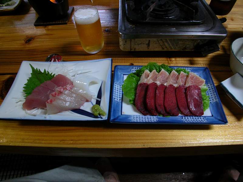 | 2日目の料理、鹿と地鶏の刺身、尾鷲港の魚