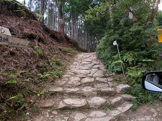 | 熊野街道も通っています。馬越峠越えの石畳の道です。仕事現場の林道を交差していました。