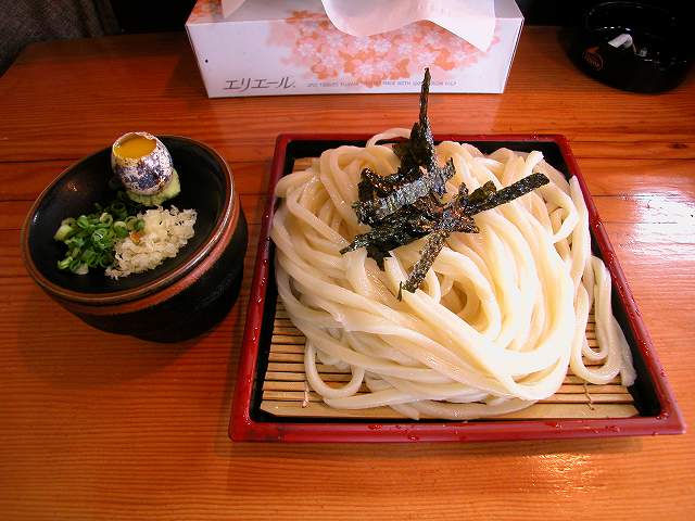 | 出てきたうどん、腰がありなかなか、汁にもう少し工夫が欲しい