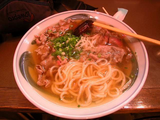 | ここの名物は肉うどん