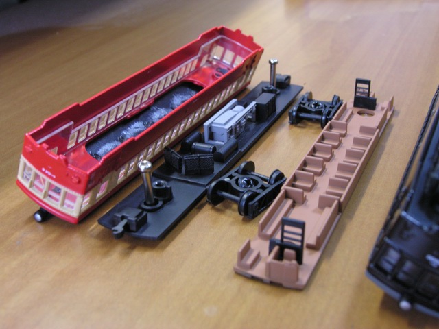 内部の様子です。座席や、うれしい事に運転室後部の仕切りも再現されています。運転室横の座席は前向きなのですがここまで再現されており、うれしくなります。後は、座席シートを紺、緑などで再現したくなります。