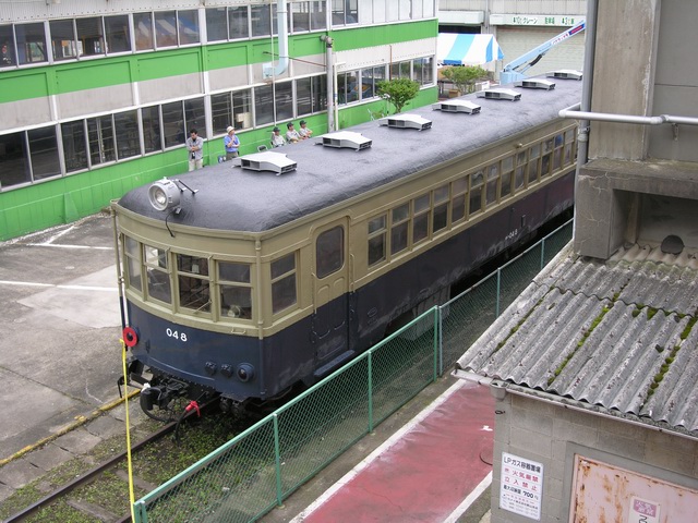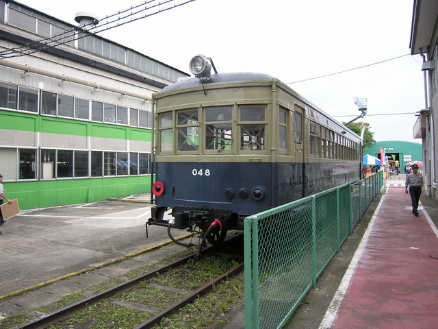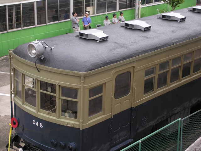 JRフェスティバルin郡山工場2006に展示された状況です。昨年の展示では屋根のシートがはがされ、ビニールがかけられておりましたが、屋根は完全に新しく張り替えられていました。屋根の修理は古くからの工法であるシートの上に滑り止めの砂で固める方法をとられております。同時に雨どいも新規に制作され取り付けられていました。