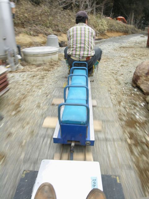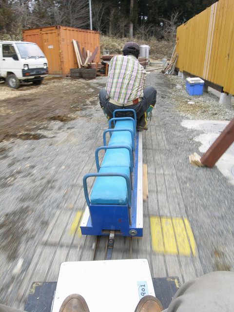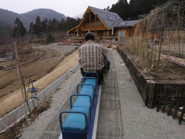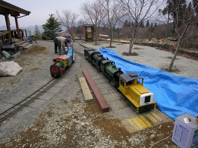 たかはら線敷設のために用意した線路と枕木です。線路計画を進めており、6月から敷設に入るそうです。線路を敷くのを手伝ってくれる人がいまいしたら助かりますと言う話でした。 |