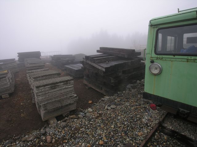 軌間610mmを中心としたトロッコ鉄道です。すでに線路と枕木は準備できており、あとは敷くだけという状態です。 |