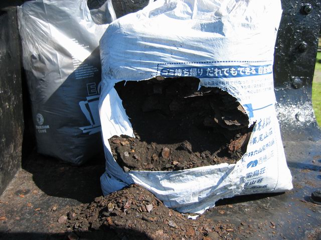 | 持参したビニール袋では小さくすぐに破けてしまいます。店は遠く、近くのはた乃食堂さんへお願いして大きな黒いビニール袋を頂戴しました。それもすぐに破けてしまいしました。またもお願いして今度は粉が入っていた大きな袋を頂戴しましたが、持ち上げた時に重く持て余してしまいすぐに破いてしまいました。