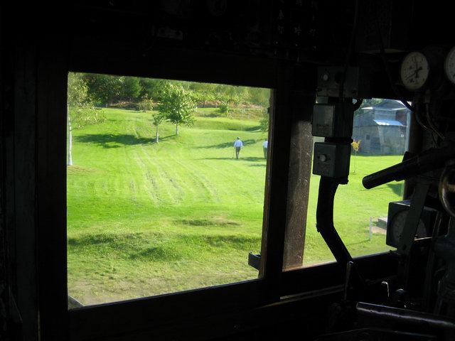 | 最終日は、クモの巣払いと周辺のお掃除、線路内の草むしりなどを中心に行いました。昨日の煙室扉をチャレンジしましたが、やはり硬くて私の言う事を聞いてくれません。