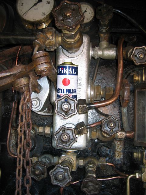 | その後は、ピカールにて運転室中央の蛇口みたいな所(?)真ちゅうを磨きました。