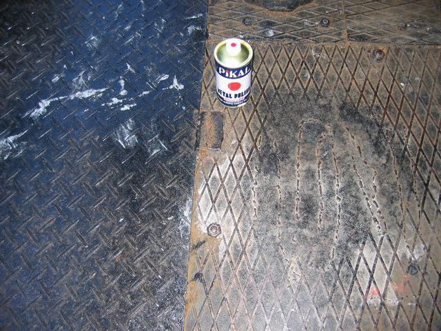 | ピカールを床に溢してしまい、ついでに蓋になっている鉄板部分を磨いたら逆に汚してしまったようです。接続部の床も溢して汚れてしまいました。(ゴメンナサイ)