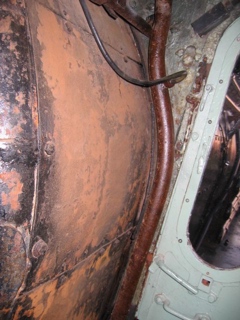 | 最後は、運手室内、右奥扉の手前の側面箇所、錆が出て塗装が剥れ掛けていましたので、塗装してもらえるように錆落しをしました。【宜しくお願いします】