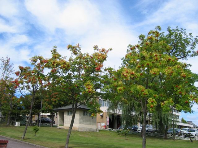 | 市立博物館へ寄り、お掃除の報告とお願い箇所を伝えて鍵をお返ししました。そして、ガリンコ掲示板の復活と上屋(しつこいようですが)お願いしました。紋別市内のナナカマドの紅葉が始まり秋を感じました。山で見るよりも新鮮で赤い実がとても可愛い。