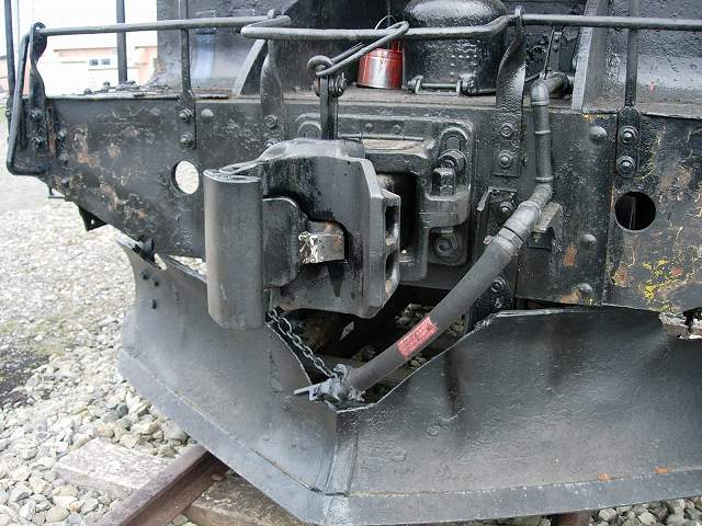 | 前端梁も塗装が荒れているので、ケレンを行います。塗膜をめくるとかつての警戒色である黄色が現れます。ケレンのついでに、錠が落ちない自動連結器を修復します。ナックルの一部をグラインダーで削り、油を差すことで動作が復活しました。