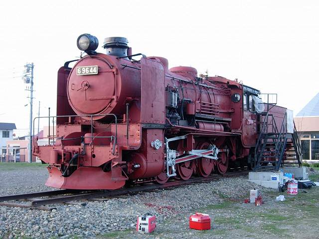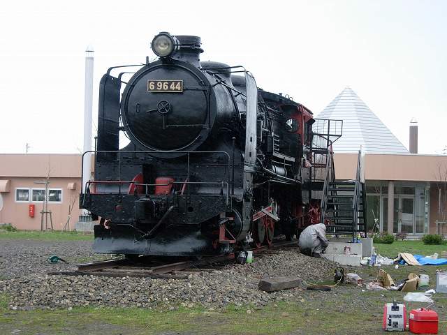| やまてつも予定を変更し、今日も作業をして頂きます。朝からの濃い霧と0℃近い悪条件で塗装が困難なのですが、湿った車体を懸命にウエスで拭いていると昼前には少し雲が高くなって乾いてきたので、残った部分の上塗りをしていきます。しかしながら、ランボードの上や炭水車上面など、水溜りになってしまったところは結局塗装できずじまいになりました。この時期のオホーツク地方は天候が不順で、気温も常に5℃以下なので塗装には不向きなのが困ります。それでも夕方までには、塗り残しがたくさんあるものの一応なんとか見ることのできる状態にまでなりました。