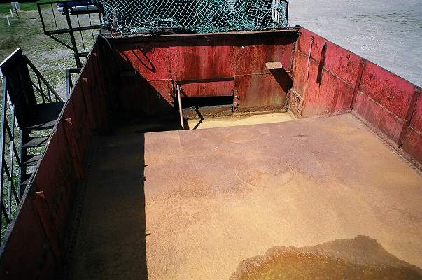 後部、炭庫妻板すそは腐食により穴が開いています。