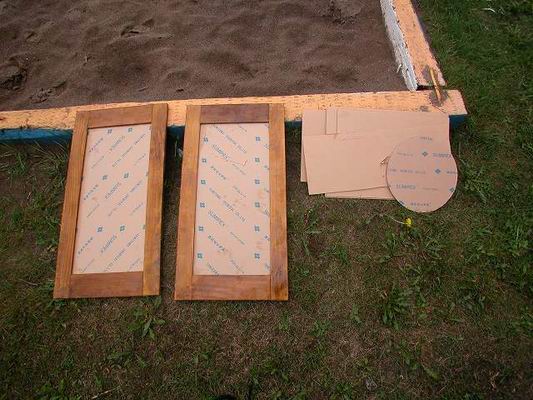 | 今回の整備のために作った窓枠他の部品です。町にアクリル板を買って頂きました。窓枠はウレタンニス仕上げとし、木の感触を出すようにしました。