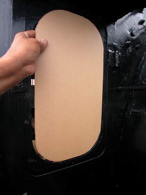 | Hゴムにより取り付けるため、窓の大きさより17mm小さく正確に切り出さないとなりません。最後の微調整はサンダーを用いて行いました。