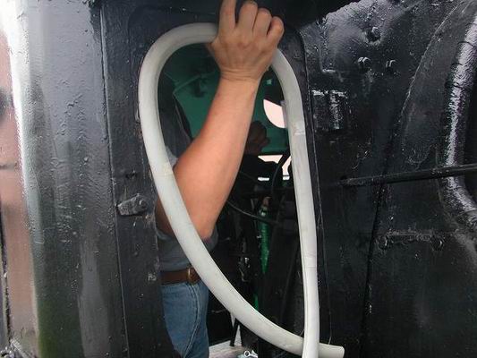 | 水面計を取り付けたところです。水面計右側です。非常に精巧に作られています。技術の高さを感じます。写真ではわからないのですがD51953L、Rの刻印があります。