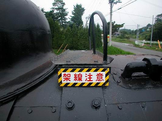 | まずは架線注意表示板の取付。小型のものは大夕張鉄道保存会工場長がシールを作ってくれました。