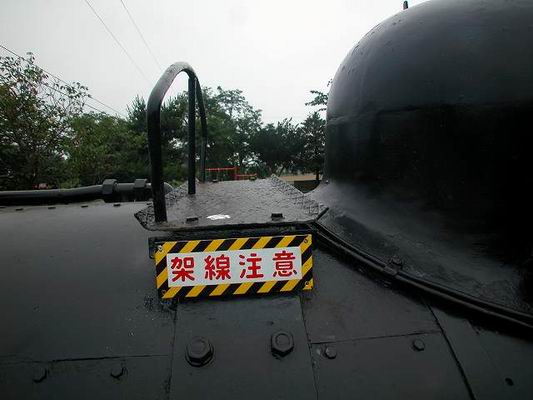 | 砂箱前デッキのところには、大型の架線注意表示板がつきます。これはT.K生さんが仕入れてくれたものです。昔の規格より横方向で3cmほど小さくなっていました。