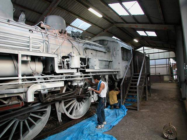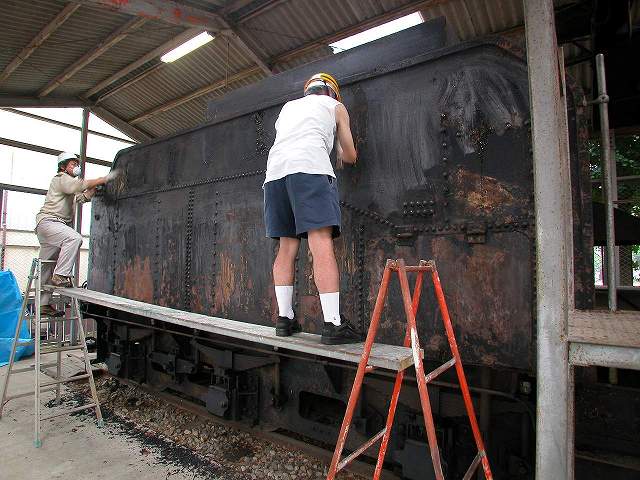 | 3日目は機関車本体の残りのケレン作業と下塗りを行いました。