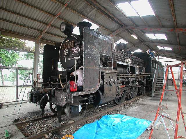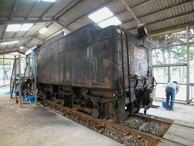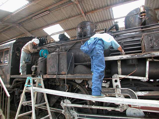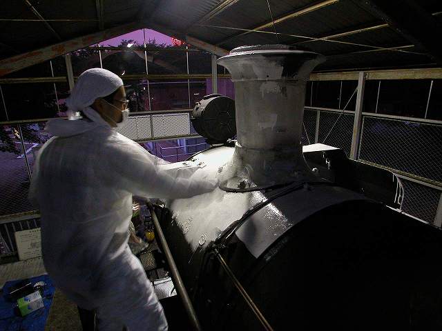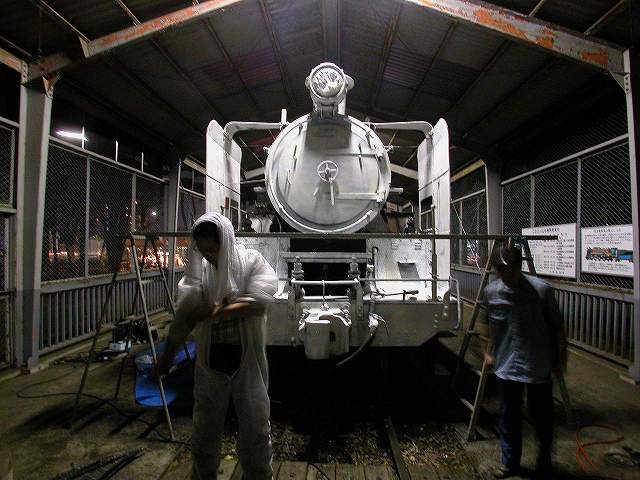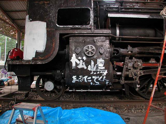 | 当日は、駅東公園は祭りの会場となっていました。テンダー側は特に人が集まる場所に近く、塗装の剥離は、剥離剤にて行ないました。