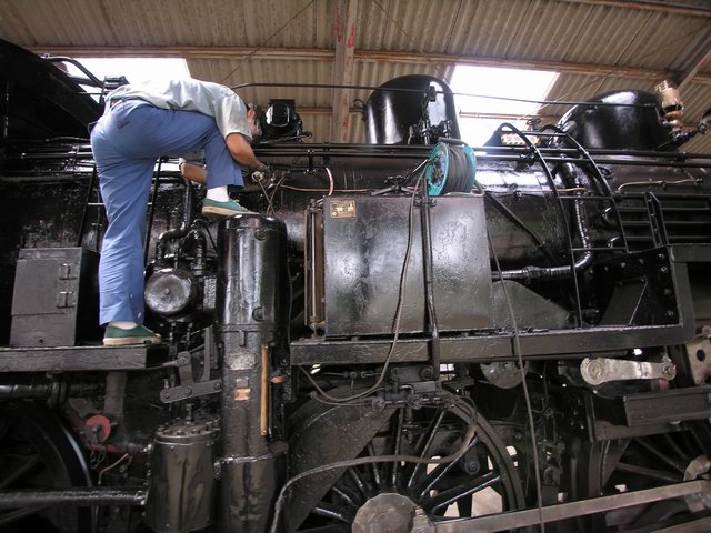 | 空気作用管の磨きだしを行うT.K生さんです。本当は取外して行うのがベターなのですが、手間があまりにもかかるので、表面のみを磨きだしました。、