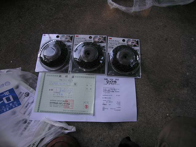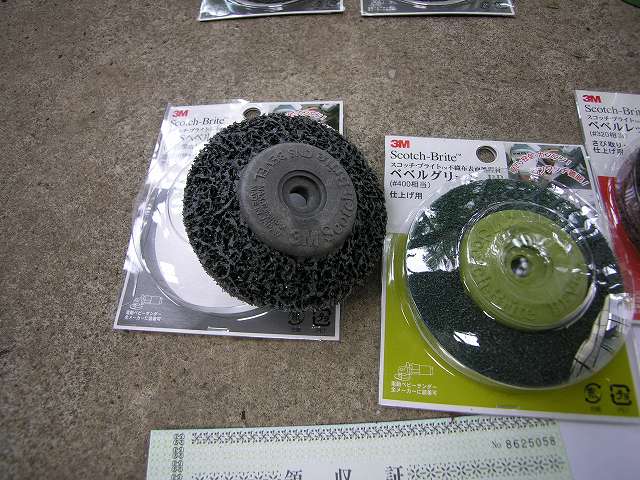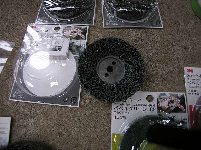| 3回目購入品 消耗の激しい錆落し用ヤスリ、ディスクグラインダー用パット(3M CNSベベルブラックBP)は買足しました。このディスクグラインダーパット(3M CNSベベルブラックBP)は優れもので、金属面を痛めず塗装などの柔らかいものを研磨できるので重宝しました。