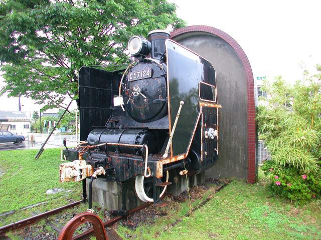 | 鹿児島空港を降りて、はじめに寄った宮之城、そこにはC57124の前頭部がある。機関車も前だけだと悲しいもの。ちなみにこの機関車は、九州SL最後の年の1974年まで活躍し、廃車後は鹿児島機関区入り口に前頭部のみ切られ、モニュメントとして飾られた。鹿児島機関区廃止後に宮之城に移された。