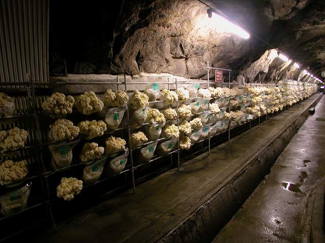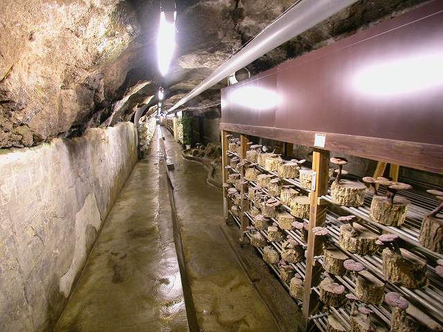 | 発電所の導水道跡を利用してキノコ栽培が行われています。