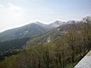 釜伏山に登る道路の途中から宇曾利山湖と遠くに陸奥燧ケ岳を望む